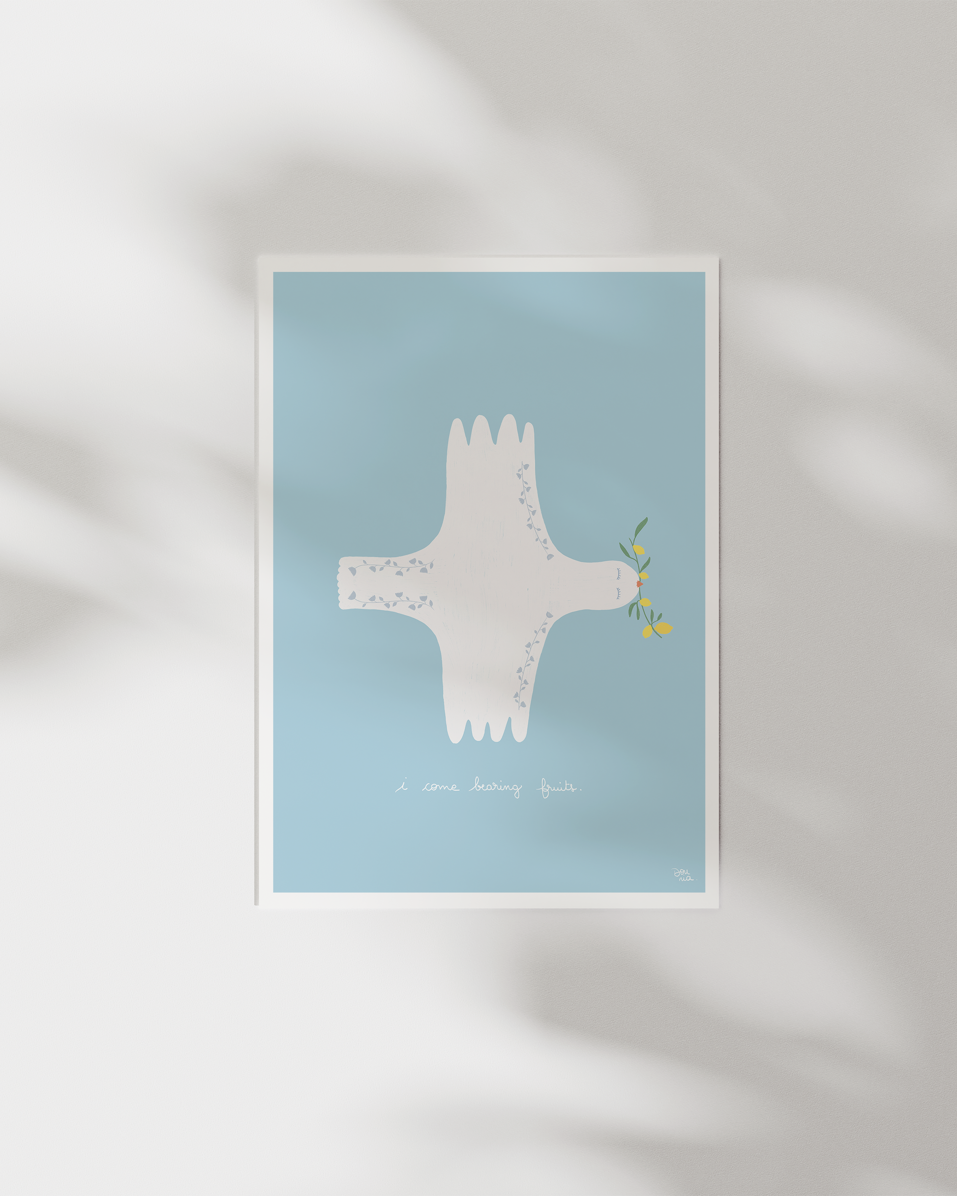 Dounia is inspired by everyday life and creates playful, child-like illustrations full of charm and personality. This piece, “Bear Fruit” captures that spirit in a gallery-style format.