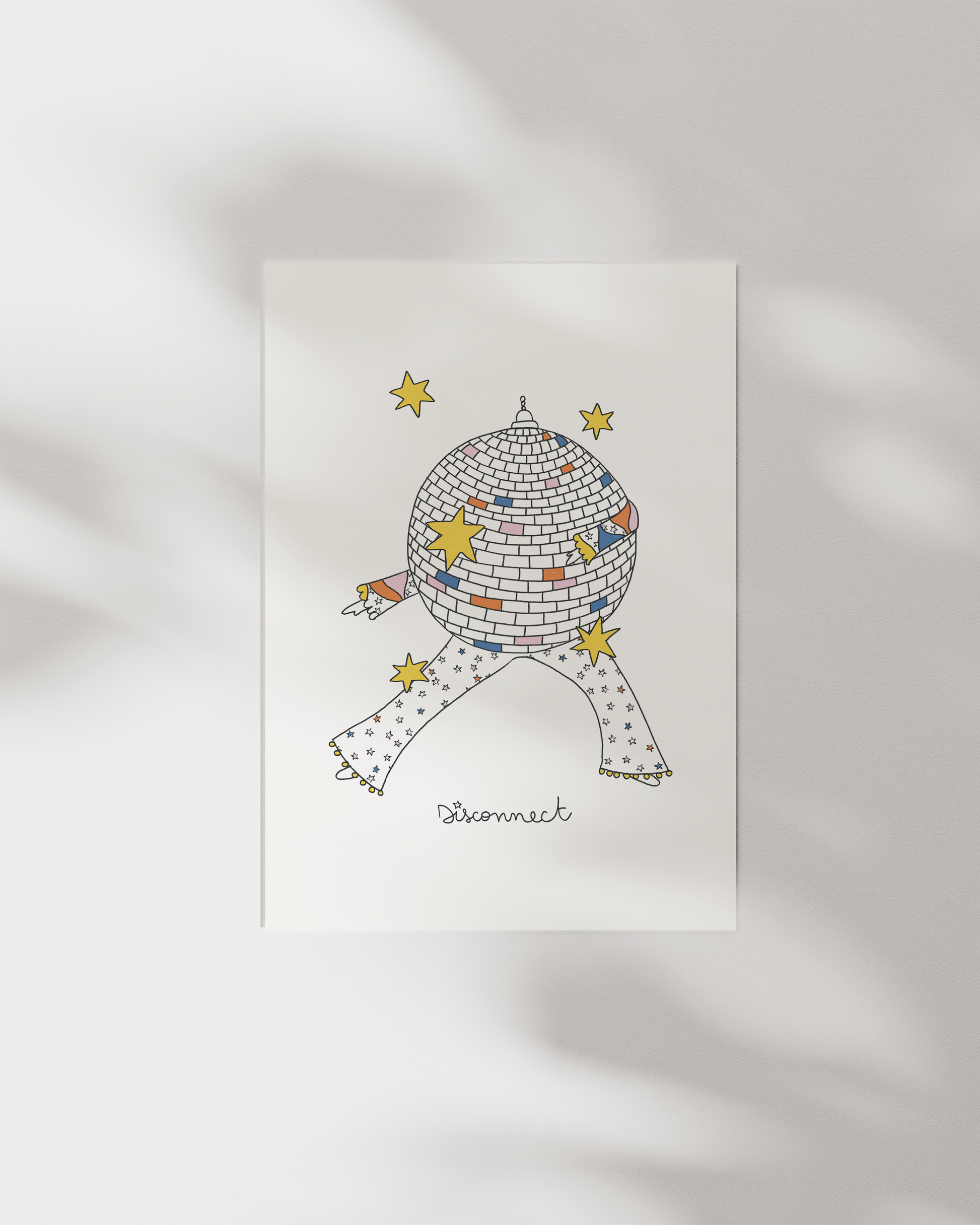 Dounia is inspired by everyday life and creates playful, child-like illustrations full of charm and personality. This piece, “Disconnect” captures that spirit in a gallery-style format.