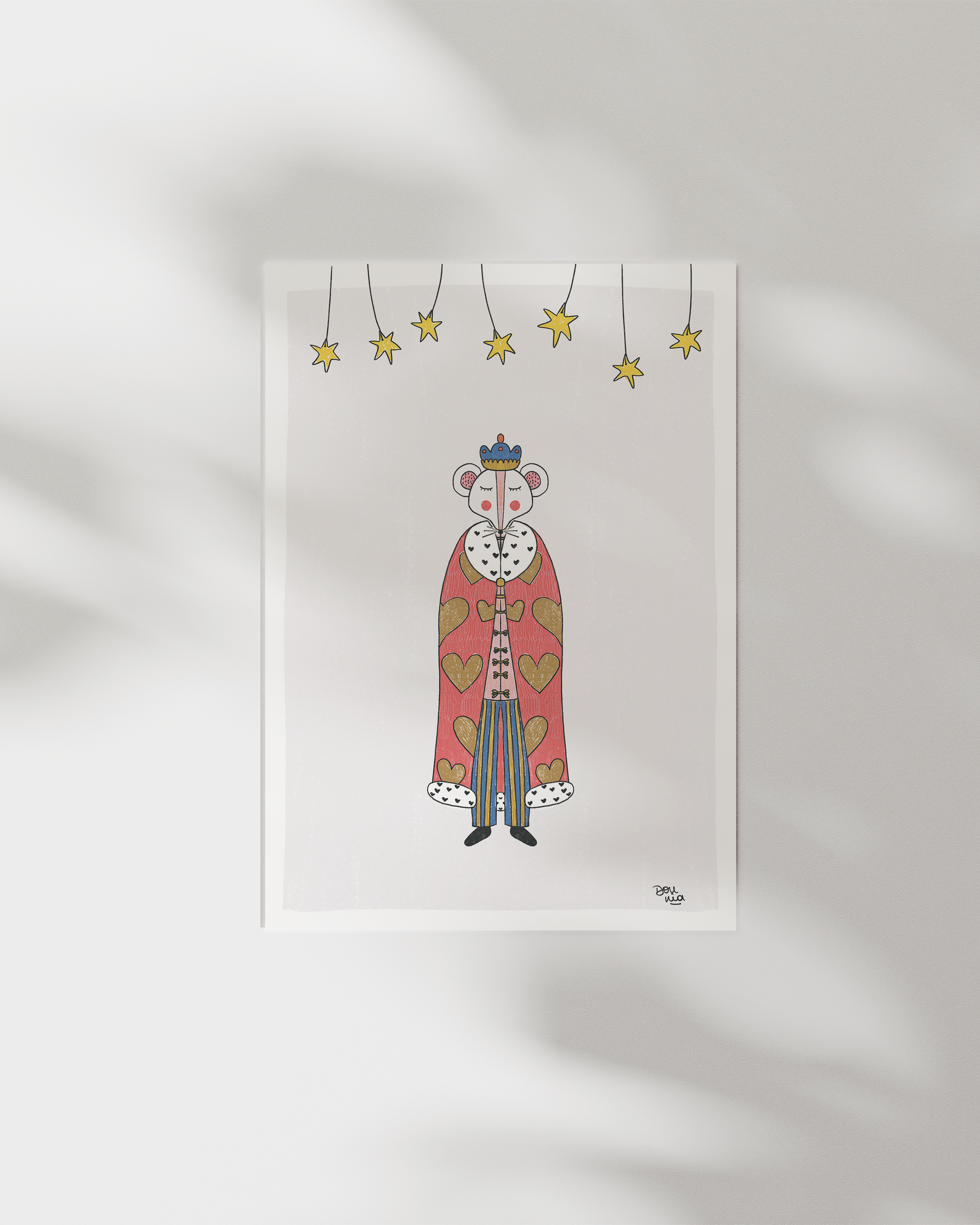 Dounia is inspired by everyday life and creates playful, child-like illustrations full of charm and personality. This piece, “Mouse King” captures that spirit in a gallery-style format.
